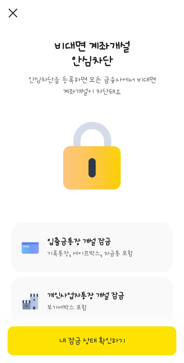 ✨ 잠금 설정을 완료하면 대출, 신용카드 발급, 비대면 통장 개설 모두 차단되어