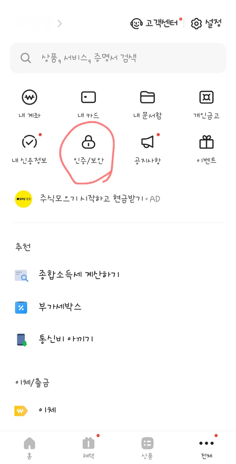 - 카카오뱅크 앱 실행