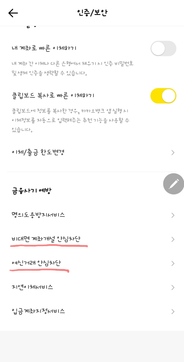 - 금융사기 예방 항목에서