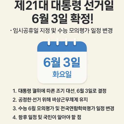 제21대 대통령 선거일 6월 3일 확정! 임시공휴일 지정 및 수능 모의평가 일정 변경